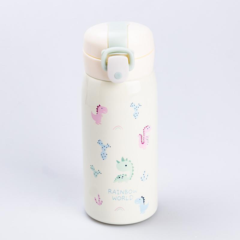 Термос дитячий з поїлкою металевий «динозавр» 350 мл молочний