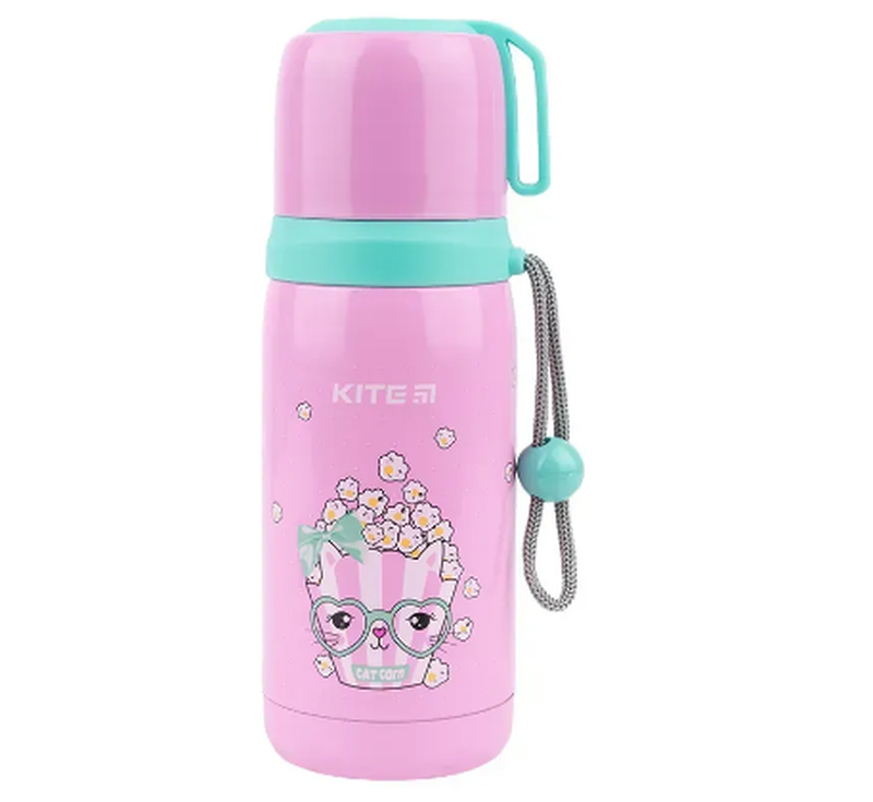 Термос детский Kite K21-301-02 сохраняет температуру напитков, чтобы ребенок мог в любой момент подкрепиться теплым ароматным чаем, полезным компотом или вкуснечком какао. Милый дизайн с попкорном поднимет настроение: нежно-розовый термос станет любимым аксессуаром маленькой принцессы. Он незаменим в школе, в странствии, на пикнике или на прогулке. Отлично помещается в рюкзаке, а благодаря надежному клапану – герметично закрывается, не допуская проливания жидкости. Термос отлично удерживает тепло или холод, сохраняя температуру напитка до 6-ти часов. Он не даст теплому чаю остыть, а прохладного лимонада – стать теплее. Поэтому термос актуальн в любое время года. Зимой поможет согреться, а летом – освежиться. Внутренняя и внешняя колбы изготовлены из высококачественной нержавеющей стали AISI 304, оптимальной для пищевой промышленности. Это безопасный для здоровья материал – он не накапливает запахи и не влияет на вкус напитка. Такой термос надежнее и прочнее, чем термос со стеклянной колбой: он не разобьется и не расколется при случайном падении. А это очень важно для маленьких непосед с их ускоренным ритмом жизни. Крышка термоса – функциональная чашечка с ручкой, из которой приятно и удобно пить. Стенки термоса не нагреваются, поэтому его комфортно держать в руках. Детский термос Kite – красивый и всегда нужный подарок, который принесет ребенку радость и пользу. Он наполнит повседневность уютными чаепитиями и согреет домашним теплом даже далеко за пределами дома. Особенности: • объем 350 мл – компактный и вместительный; • сохраняет температуру напитка до 6-ти часов – горячее долго остается горячим, а холодное – холодным; • безопасный и качественный – выполнен из стали для пищевой промышленности AISI 304; • не накапливает ароматы и не влияет на вкус напитка; • крышка – функциональная чашка с ручкой; • герметичный клапан – не дает жидкости проливаться; • внешние стенки термоса не нагреваются – комфортно держать в руках; • текстильная ручка-петля – удобная для переноски; • стильный дизайн – для вдохновения.