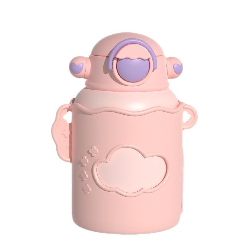 Детский термос с поильником и ремешком 300 мл розовый