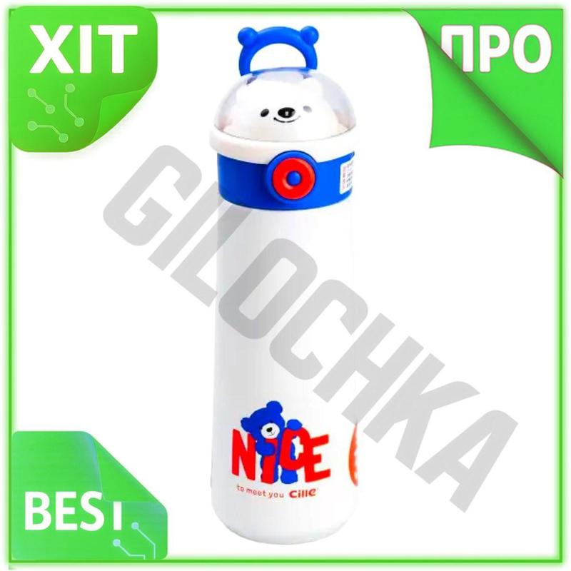 Ve термос дитячий 500 мл new version із трубочкою синій для води та напоїв із нержавіючої...
