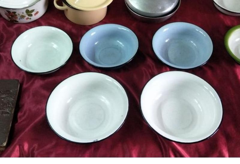 Миски радянських часів, у різному стані. Дві сині та біла 1.5 л, дві білі 2 л. Ціни від 70 до 150 за штуку, залежно від літражу та стану. Безпечна оплата - тільки Укрпошта.