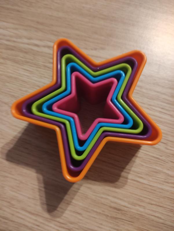Набір пластикових форм у вигляді зірки різних розмірів для вирізання та випікання печива. 5 штук в одному контейнері.