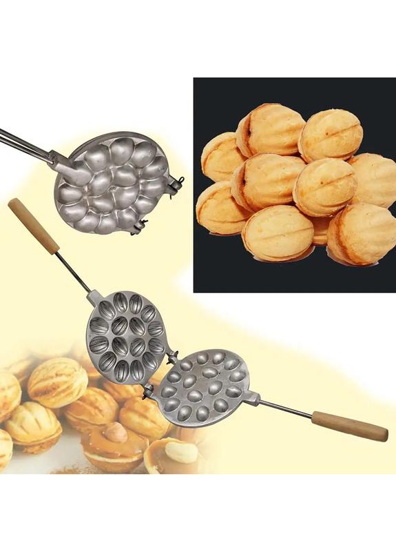 Форма для выпечки орешков с начинкой из сгущенного молока. Форма предназначена для выпечки на электрической или газовой плите. Полученная объемная выпечка может наполняться самой разной начинкой: ягодной, шоколадной, сырной, а также из джема, взбитых сливок, орехового, сливочного, ванильного крема, пудинга, меда. Половинки «ореха» можно наполнить начинкой и не складывать в одно целое. Рецепты приготовления зависят от Вашей фантазии. Одновременно можно сделать 16 половинок ореха. Общие характеристики Тип форми Кругла Количество выпечки 16 Конструкция формы Цілісна Страна производитель Украина Гарантия 12 месяцев официальной гарантии от производителя Дополнительные характеристики Материал пластин Специальный пищевой алюминиевый сплав Материал ручек Стальной пруток с деревом Диаметр рабочей поверхности 160 мм Толщина рабочих поверхностей 28 мм Размер готового кондитерского изделия (половинки) 35 х 27 х 12 мм Габаритные размеры формы 390 х 160 х 40 мм Вес 850 г