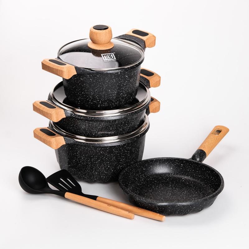 Набор посуды, 3 кастрюли, с толстодонной алюминиевой лопаткой и половником mgc, черный. (l...