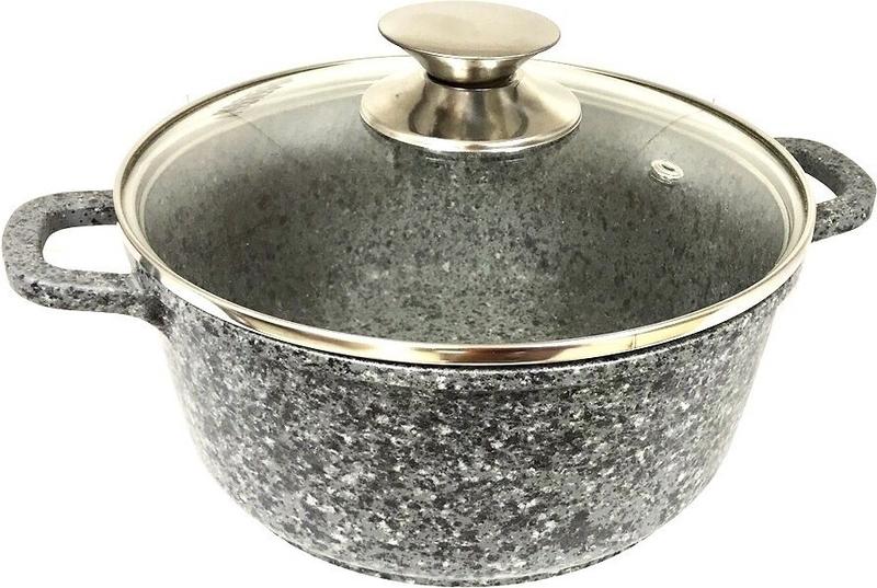 особливості: Висока якість алюмінію гарантує стійкість до корозії при стандартному миття, Легке та швидке нагрівання, Підходить для всіх кухонних плит, Гранітне антипригарне покриття, Стійкість до високої температури, Швидкий та рівномірний розподіл тепла для приготування їжі з невеликою кількістю жиру Діаметр 28 см Об'єм 6,3 л. Гранітне покриття матове