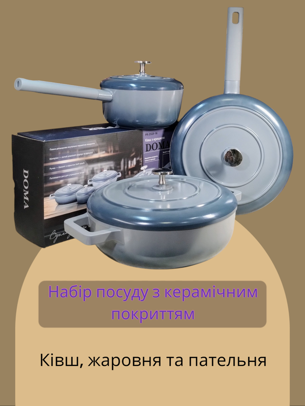 Этот стильный и функциональный набор посуды станет незаменимым помощником на вашей кухне. Благодаря высококачественным материалам и современным технологиям изготовления, каждый элемент набора сочетает в себе удобство, долговечность и элегантный дизайн. Основные характеристики: - Материалы: корпус и крышки изготовлены из высококачественного литого алюминия, что обеспечивает долговечность и быстрый нагрев. - Керамическое покрытие: внутреннее двухслойное покрытие премиум класса для легкого ухода и равномерного приготовления блюд. Керамическое покрытие применяется также на крышках. - Утолщенное дно: гарантирует защиту от деформации даже при интенсивном использовании. - Система сбора конденсата: крышки оснащены функцией капельного сбора конденсата для сохранения аромата и полезных свойств блюд. - Термостойкое покрытие: внешнее градиентное покрытие добавляет эстетичности и устойчиво к высоким температурам. - Эргономичные ручки: ручки с эффектом Soft Touch для комфортного удержания. - Использование в духовке: жаровню и кастрюли можно безопасно использовать в духовом шкафу. Размеры: 1. Жаровня-казан: - Диаметр дна: 26 см - Высота: 10 см - Объем: 3,5 л - Цвет: серо-голубой 2. Ковш: - Объем: 1,8 л - Диаметр: 18 см 3. Упаковка: - Диаметр дна: 26 см Этот набор идеально подходит для приготовления самых разнообразных блюд: от вкусных соусов до запеченных деликатесов в духовке. Высокое качество материалов и функциональность обеспечат долговременное удовольствие от использования.
