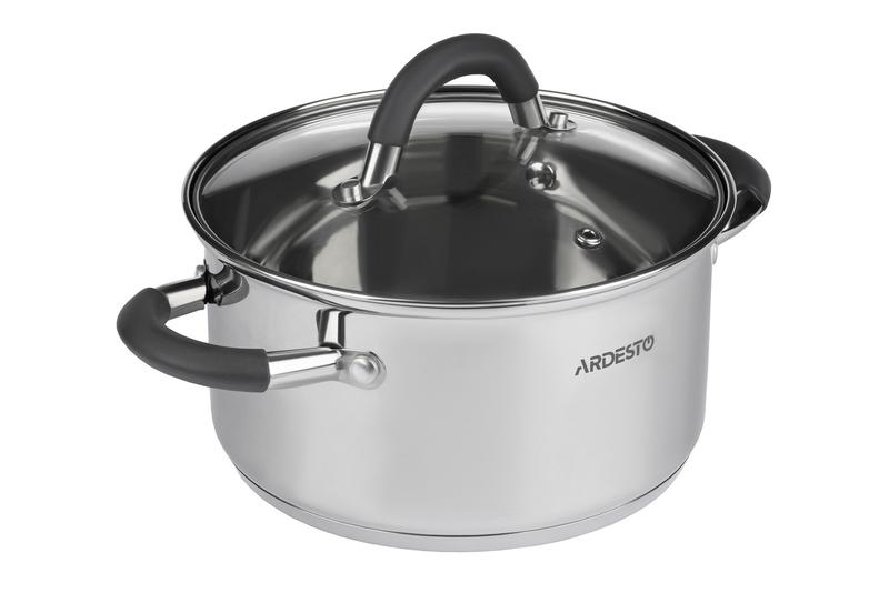 Каструля Ardesto Gemini Salerno AR1947CS (22 см) 4,7 л Каструля серії Gemini Salerno виготовлена з нержавіючої сталі, а ручки отримали силіконове покриття. Каструля поставляється з термостійкою скляною кришкою з отвором для пари та сумісна з усіма видами плит, включаючи індукційну. - Серія Gemini Salerno - Тип Каструля - Матеріал Нержавіюча сталь - Матеріал ручок Нержавіюча сталь з силіконовим покриттям - Колір Нержавіюча сталь - Об'єм, л 4,7 - Діаметр, см 22 - Кришка Cкляна - Товщина стінок, мм 0.5 - Довжина дна, мм 2.9 - Сумісність з плитами Газові, електричні, склокерамічні, галогенні, індукційні - Очищення в посудомийній машині Ні - Комплект Каструля та кришка -