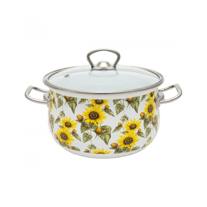Каструля емальов. "Infinity" 18см 2,9л з склян. кришкою Соняшник №ED1181/01655(6). Якісна каструля для приготування різних страв. Виконана з довговічних матеріалів, що забезпечують рівномірний нагрів.