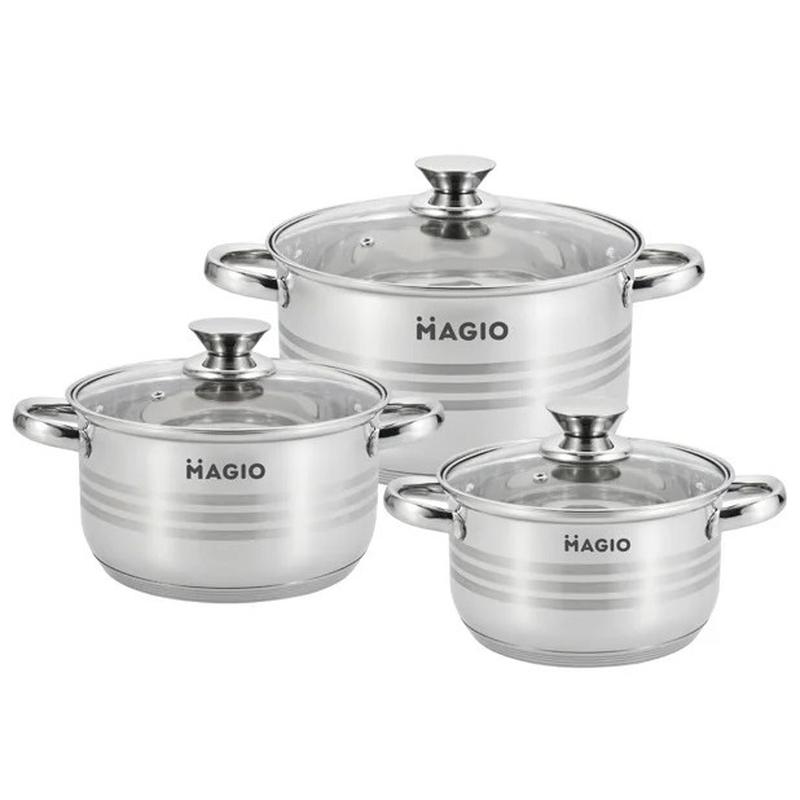 📝 Кастрюли из нержавейки MAGIO, Фирменные наборы кастрюль, Кастрюля хорошего качевства, Хорошие кастрюли FB-39 - 🔘 У набір входять 3 каструлі / 3 кришки - 🔘 Об’єм, л 2,6/3,6/6,1 - 🔘 Діаметр, см 18/20/24 - 🔘 Матеріал Нержавіюча сталь - 🔘 Сумісність з джерелами тепла Індукційні плити, електричні плити, склокерамічні плити, газові плити - 🔘 Індикатор нагріву Ні - 🔘 Упаковано в коробку Так - 🔘 Використання в посудомийній машині Так - 🔘 Товщина стінок, мм 0,5 - 🔘 Товщина дна, мм 3 - 🔘 Мірна шкала Так