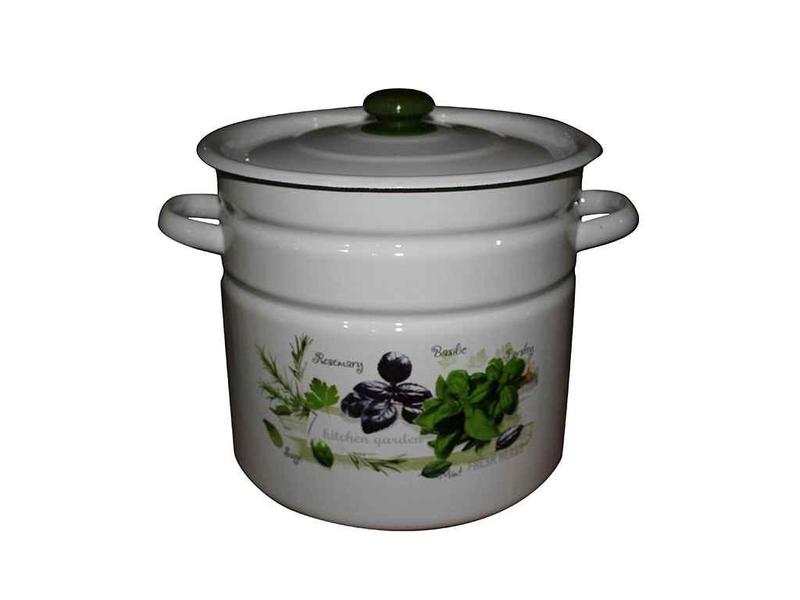 кришка - сталь з емальованим покриттям, ручка-бакелит Товщина стінок 1,2 мм Дно: покриття емаллю, з підвищеною термовіддачею Їжа швидко нагрівається і залишається теплою тривалий час Тип джерела тепла: підходить для кухонних плит: газові, електричні Колір: повністю декорована зовнішня поверхня виробу