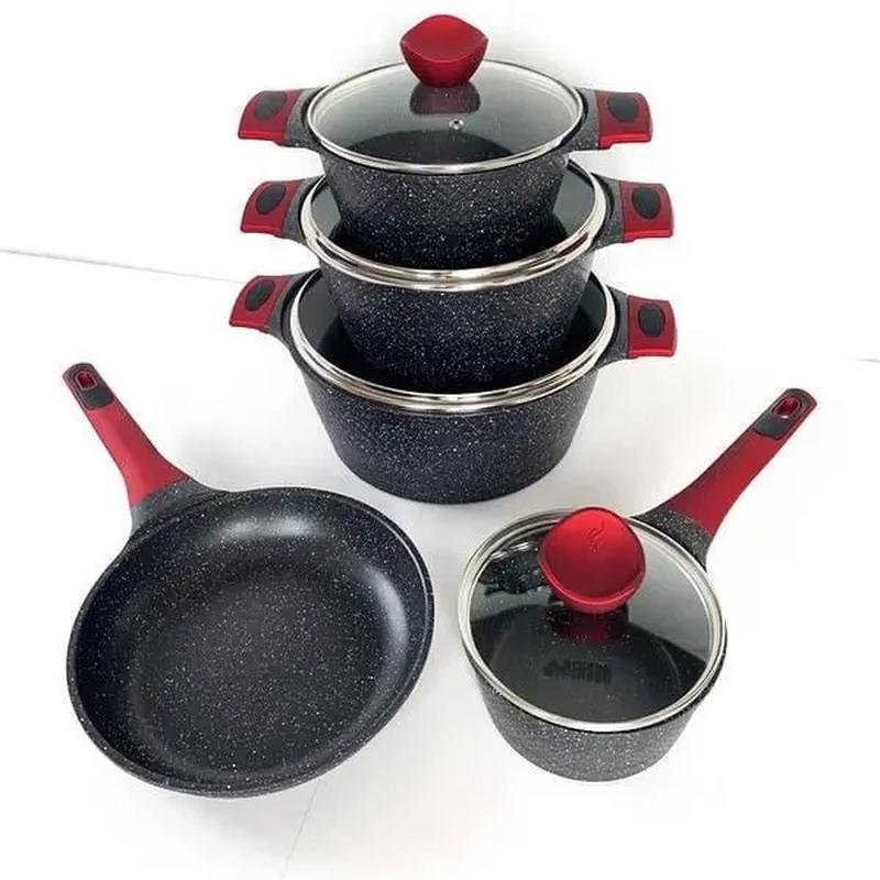 Набор кастрюль bn-338 9 предметов, ковшик 1,4 л; 2,4л; 4л; 6,3л; сковорода 24см