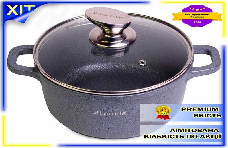 ## DM Каструля Kamille Landes специфікація 2.2 Grey 6.5л з антипригарним покриттям для варіння та гасіння SPE|LZ Каструля Kamille Landes Grey з литого алюмінію. Об'єм 6.5л. Потовщені алюмінієві стінки тверді та міцні, не піддаються деформації. Чорне мармурове антипригарне покриття підвищує теплорозподільні та антипригарні властивості металу. Стилізований під граніт. Посуд підходить для різноманітних кулінарних завдань; як для варіння рідких страв, так і для підсмажування та гасіння м'яса чи овочів. Можна використовувати в духовці. Литі алюмінієві ручки зручно розташовані; Вдало обраний розмір ручок, зручний для обхвату руками та перенесення посуду. Кришка виконана з жароміцного скла із захисним сталевим обідком та паровідведенням. На кришці стильна ручка із нержавіючої сталі. Багатошарове дно дозволяє використовувати каструлю на всіх типах плит, навіть індукційних та склокерамічних. Верхній діаметр каструлі 28см, висота стінок 12.5см. Можливе миття в посудомийній машині. Кожна деталь продумана та виконана на високому рівні якості, доводячи каструлю Kamille Landes Grey до досконалості. Назва Од.Вим. Значення СеріяLandes Антипригарне покриттяMarble Coating МатеріалЛитий алюміній Об'єм6.5 л РозмірØ28 см, висота стінок 12.5 см КришкаСкляна ДноБагатошарове індукційне Комплектація1 каструля, 1 кришка Посудомийна машинаТак Не проґавте можливість, кількість акційних пропозицій обмежена! Будьте пильнi! На ринку з’явилося багато пiдробок низької якості, якi видають за opигiнaл! Ми гарантуємо найвищу якicть нашої продукції в Україні, яка бездоганно виконує свої функцiї та дарує вам лише позитивнi емоції. Чому покупці обирають нас? Рекомендації та позитивнi вiдгуки вiд реальних покупцiв Наш інтернет-магазин пишається численними схвальними вiдгуками вiд задоволених клієнтів. Перегляньте їхнi думки та рекомендацii безпосередньо тут або на нашому сайті, щоб переконатися у правильностi вашого вибору. Відкритість та поряднicть Ми будуємо відносини з клієнтами на основі чесності та відкритості, завжди готові йти назустріч. Всі деталi про товари, гарантii та умови обміну чітко прописані на сайті, що забезпечує довipу та взаєморозуміння. Зручне повернення без зайвих клопотів Ми розуміємо, що іноді трапляється, що річ не пiдiйшла. Тому наша система повернення проста та зрозуміла, щоб ви почували себе впевнено та спокійно пiсля покупки. Висококласний сервіс, 10 рокiв досвiду Наші фахівці завжди готові надати професійну консультацію та допомогти з вибором. Ми цiнуємо кожного клієнта та прагнемо зробити ваш досвід покупок максимально приємним та зручним. Оперативна доставка та рiзнi варiанти оплати Ми забезпечуємо швидку доставку по всій країні, а також пропонуємо широкий спектр способів оплати, включаючи онлайн-платежі та оплату при отриманні. Обирайте опцію, яка вам найзручніша. ✅ Кожен товар проходить ретельну перевiрку перед вiдправкою ✅ Відгуки наших вдячних клієнтів Поспішайте, залишилося лише 3 акцiйних товари! ✅ З повагою до кожного покупця ✅ ДОСТАВКА ПО ВСIЙ УКРАЇНI: Ми дбайливо пакуємо кожне замовлення, щоб вашi покупки приїхали цiлими та неушкодженими. Але, будь ласка, перевіряйте посилку уважно на наявність пошкоджень у пункті видачі, і якщо ви виявили дефекти, складіть акт разом із співробітником служби доставки. Без цього документу, на жаль, претензії не приймаються. Хоч пошкодження т