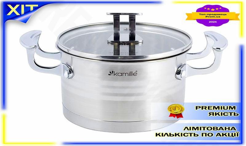 Dm каструля індукційна kamille специфікація 2.2 із нержавіючої сталі 1,5л з кришкою для пр...