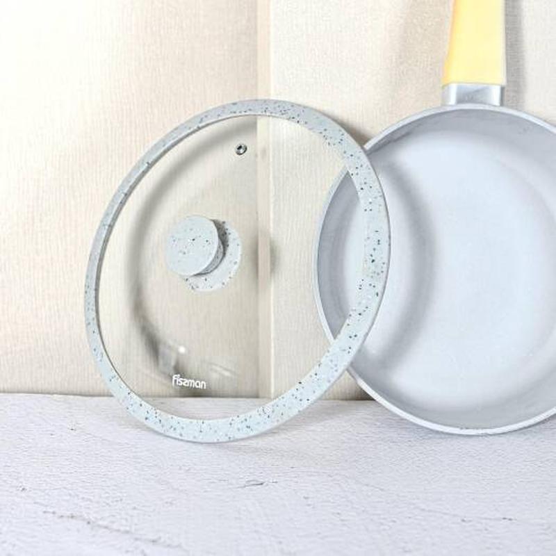 Кришка скляна fissman arcades ø28см з силіконовим ободом (світло-сірий мармур)