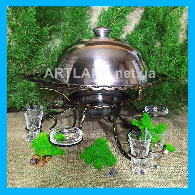 АКЦИЯ!!! САДЖ КОВАНЫЙ 36 см для подачи шашлыка (полный комплект) - 3 соусницы, 6 стеклянных рюмок + колпак (крышка). Это лучший уникальный ПОДАРОК для ваших родных и близких. В комплект входит: - колпак, - 3 соусницы, - 6 стеклянных рюмок - кованая станина, - нижняя тарелка для углей, - верхнее блюдо для шашлыка Блюдо - подставка для готового шашлыка САДЖ диаметром 36 см + крышка. Для изысканной подачи приготовленного шашлыка на праздничный стол отлично подойдёт стильный садж, с кованными элементами. На верхнее блюдо Вы выкладываете готовый шашлык, а на нижнее - горячие угли из мангала и накрываете колпаком. В результате мясо долго остается горячим и даёт возможность насладится вашим кулинарным талантом в течении всей трапезы. Больше товаров в моих объявлениях, или в нашем интернет-магазине *********************** Доставка по всей территории Украины, отправка с центрального склада города Харьков в день оформления заказа. Можем отправить товар НАЛОЖЕННЫМ ПЛАТЕЖОМ. Отправим товар перевозчиками: Новая Почта, или Укрпочта. Стоимость доставки от 70 до 90 грн.