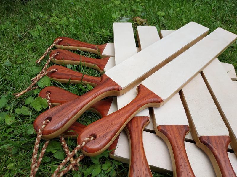 Борд застосовується для полірування небезпечної бритви перед використанням. Також така шкіряна досточка чудово справитися з правкою та поліруванням ножів та іншого різального інструменту (топорики, стамески та інше), а використовуючи полірувальні пасти різної зернистості Ви отримаєте просто відмінний результат. Застосовується тверда шкіра рослинного дублення, шліфована, товщиною 3.5-4.0 мм. Борд двосторонній, поклейка шкіри лицьовою чи зворотньою стороною на ваш вибір. Основа досточки виготовлена з вяза або дуба, якісна ручка з накладками з падука (червоне дерево) або скумпії (жовте дерево) відмінно лежить в руці. Робочий розмір борда 300*50 мм, загальна довжина 430 мм В наявності також є полірувальні пасти Dialux (сіра, блакитна, біла) Купуючи борд для правки, паста 130 грн. Також є збільшений варіант дошки з робочим розміром 300*60 мм (ціна 700 грн). Якщо у Вас залишились питання я з радістю відповім на них, звертайтеся!