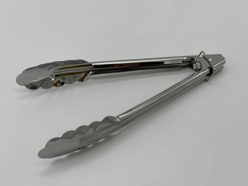 Щипці кухонні з нержавійки для перевертання м'яса універсальні щипці для кухні дубок метал...