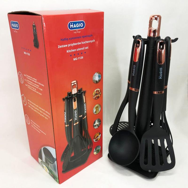 Набір кухонних приладів magio mg-1126, набір силіконових приладів для кухні, набір нейлоно...