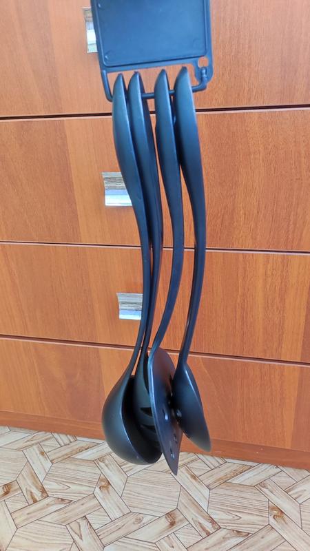 Присутній запах пластику (вже вивітрився, але може бути присутній при готуванні гарячих страв). Нюанси намагалася зобразити на фото. Висота разом з ручкою для підвішування - приблизно 40 см.