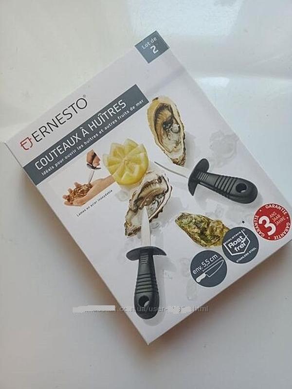 Чудовий столовий набір ножів для устриць та морепродуктів Ernesto (Німеччина) - в фірмовому упакуванні Опис виробника: Ніж для морепродуктів 2 шт багатофункціональні важільні ножі з нержавіючої сталі, пряме відкривання раковин устриць і молюсків Ручка нековзна, зручна для утримання, ручка та лезо важеля фіксовані та міцні, з високою міцністю та зносостійкістю. Розмір: 2 х 5,5 см Укрпошта, Нова пошта та інші)