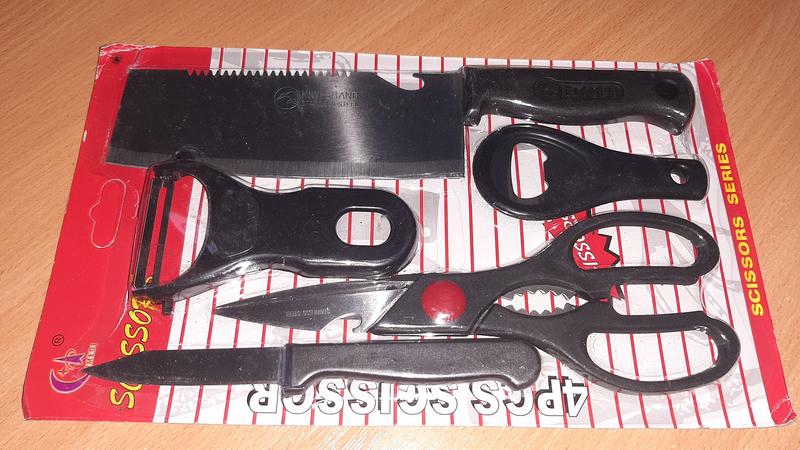 Набір кухонний з 5 предметів. Новий. Упаковка блістер .Виробник Китай. Уважно читайте умови пересилки! Пересилка товару укрпоштою на суму від 150 гривень з Оплатою на карту. Безпечною угодою пересилаю товар на суму від 300 гривень. На пересувні пункти безпечною оплатою не пересилаю, тільки повна оплата на карту. Пересилка товару новою поштою від 200 гривень, оплата тільки на карту. Перед будь якою покупкою, будь якого товару писати продавцю для уточнення