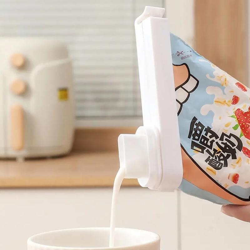 Кліпса для пакетів із дозатором Гарний помічник на Вашій кухні. Купивши пакет соку чи молока, ми звикли відрізати хвостити та кріпити прищіпкою. Але ми з Вами живемо в сучасному світі і тепер є набагато зручніше кошти - кліпса для пакетів. У наборі 1 штука Розмір 14 * 6 см. Матеріал: пластик. Колір білий