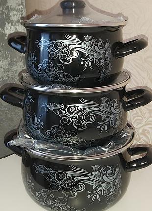 Продам новий набір емальованого посуду. ТМ "INTEROS" В набір входять каструлі 2л, 3л, 4л -Скляна кришка із загартованого скла з нерж. обідком. -Високоякісне емальоване покриття. -Підходить на всі види плит, в тому числі і індукційні. -Можна мити в посудомийній машині.