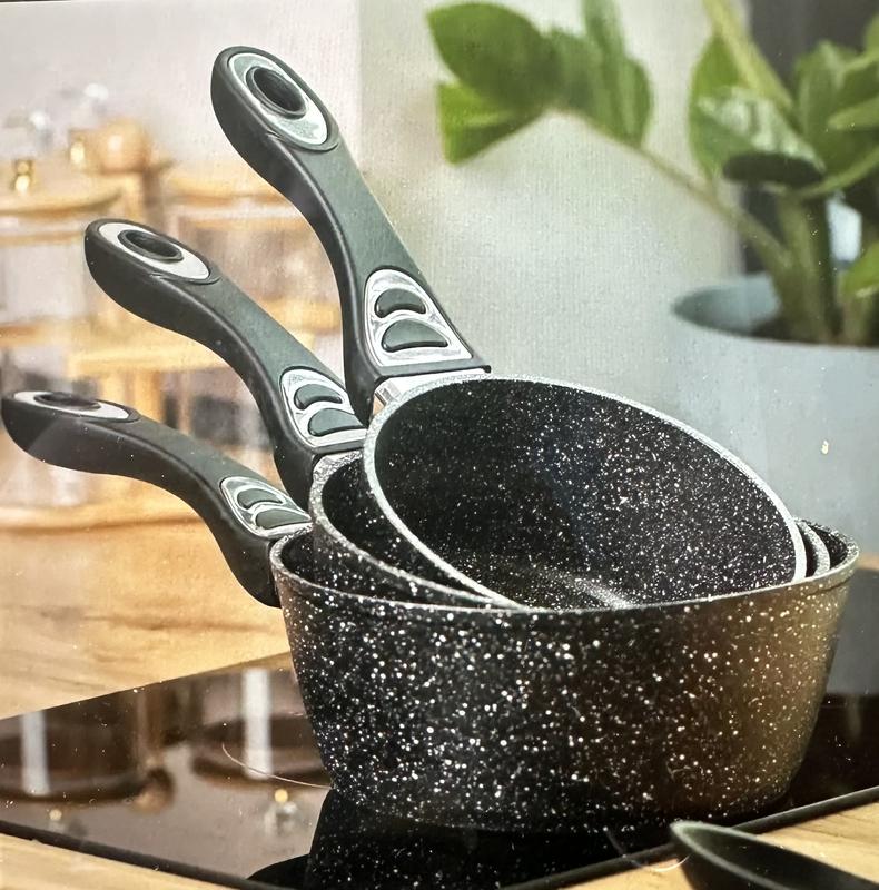 Набор ковшей с анти при хорошим покрытием 3 предмета черные Практичность и комфортная вашей кухне это набор комиссия из трех предметов станет незаменимым помощником на вашей кухне изготовлены из прочного алюминия с анти при красивом покрытии ковши обеспечивают быстрый и равномерный нагрев пищи без пригорания Размеры ковшей: 1 диаметр: 16 см 2 диаметр: 18 см 3 диаметр: 20 см Характеристики: - Набор из 3 ковшей - Антипригарное покрытие - Прочный алюминий - Ненагревающиеся ручки