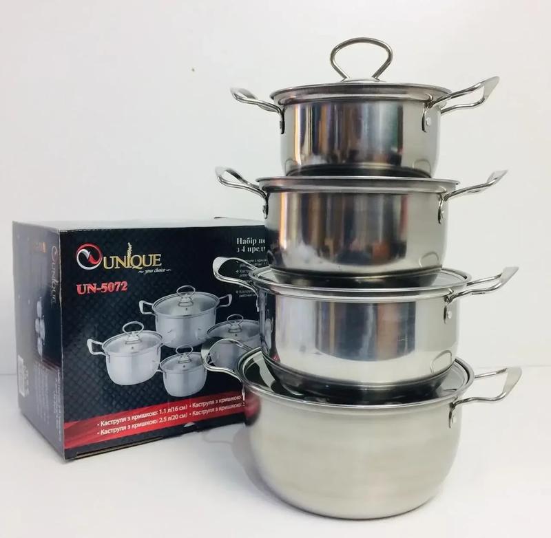 Набір каструль із неіржавкої сталі unique un-5072 8 пр (16,18,20,22 см)