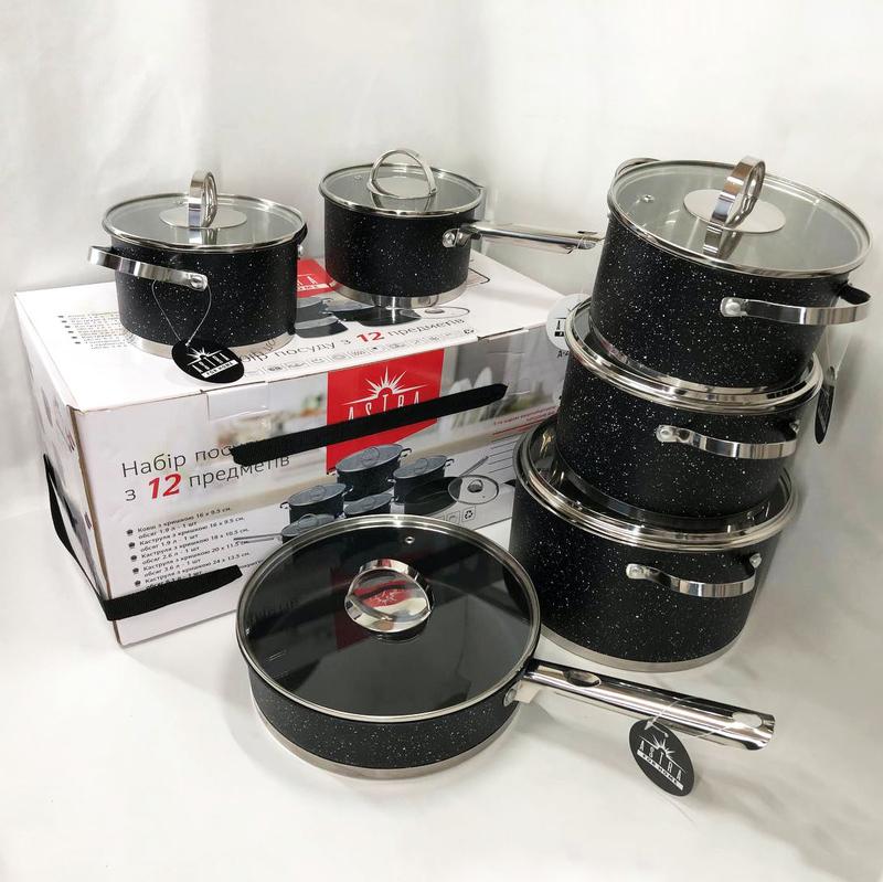 Набір посуду 12 предметів astra a-2512, набір посуду для електричних плит, збірний набір к...