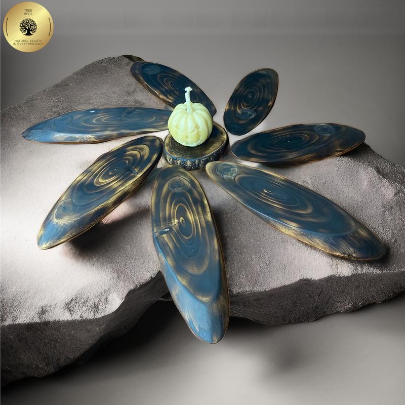 Цей виріб виготовлено з одного дерева! Тільки масив дерева, без клею! Повністю натуральна, нанесена обжарка, покрита натуральним бджолиним воском з використанням олії льна, що забезпечує максимальну герметизацію від вологи та утворення грибка. На кожній позиції є табличка про нашу кропітку працю, за яку ми відповідаємо. Під час виробництва не постраждало жодне живе дерево, адже наша політика - творити з того, що є під рукою! Ми не займаємось масовим виробництвом, кожен виріб унікальний! Склад комплекту: Підставка для столу 7шт 26*7*1,5 см Підсвічник центральний 8,5*2см 1шт 1шт Свічка з натурального бджолиного воску у формі гарбуза 6*8см Дивіться інші наші продукти. Прикрасьте свій стіл стилем і природною елегантністю за допомогою нашого ексклюзивного набору для фуршету, вечірки та суші! Виготовлений із міцного натурального ясена, цей набір поєднує в собі витонченість, довговічність та екологічність. Основні характеристики: ✔️Ясен натуральний – міцний, зносостійкий матеріал з красивою текстурою. ✔️ Безпечне покриття – покрите натуральним бджолиним воском, щоб захистити деревину та підкреслити її природну красу. ✔️ Фірмова печатка виробника – знак якості та унікальності. ✔️ Ідеально підходить для подачі суші, закусок і фруктів – стильне рішення для будь-якого випадку. Цей набір стане чудовим подарунком і незамінним аксесуаром для елегантної сервіровки столу. Додайте нотку природи до свого обіду!