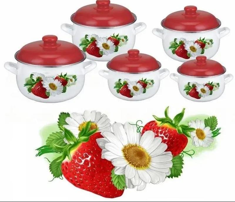 Набор кухонной посуды 10 предметов эмалированный клубнички