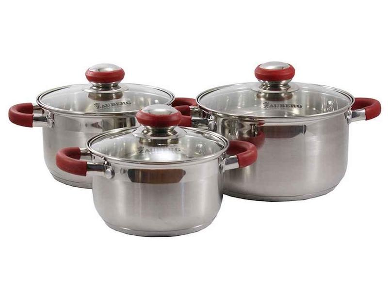 Опис Обєм: 1.9/2.6/3.6 л Товщина стінок 0,4 мм Товщина дна 2,8 мм Дно капсульне, 5-ти слойне. Кріплення ручок - клепані. Підходять для всіх видів плит, в тому числі індукційних. Характеристики:Бренд:ZAUBERG Країна-виробник:Китай