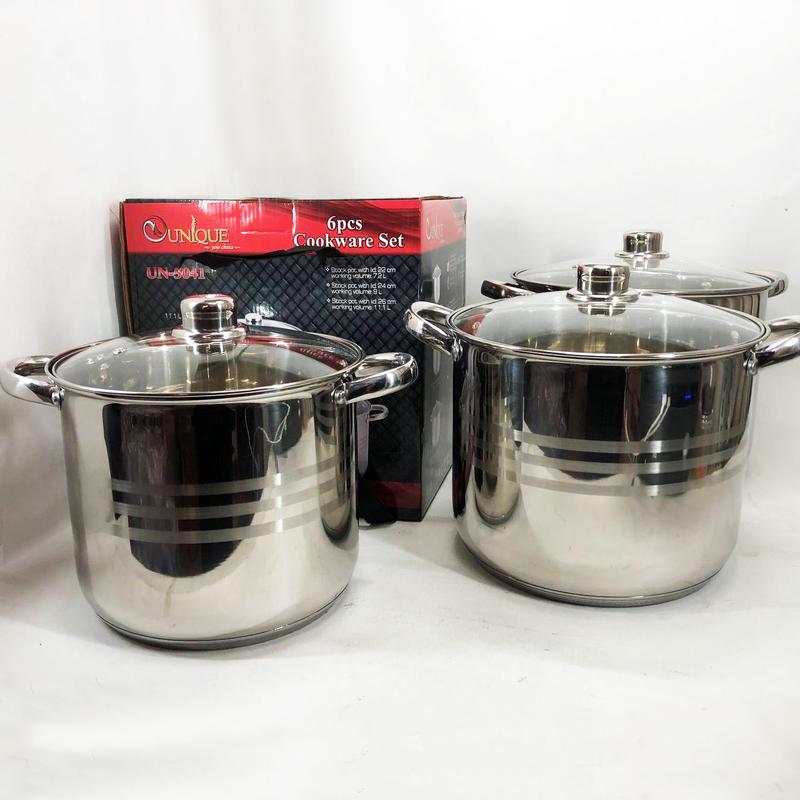 🔎 Красивый набор кастрюль с антипригарным покрытием Unique, Набор кастрюль с крышками для кухни YS-83 💡 Высококачественный набор посуды из нержавеющей стали с 5-ти слойным термоаккумулирующим дном, обеспечивает быстрый и равномерный нагрев по всему основанию, а также сохранение тепла в течении длительного времени. Совместим со всеми видами плит, включая индукционные. 💡 Термостойкие не нагревающиеся клепаные ручки. Крышки выполнены из жаропрочного стекла с отверстием для выхода пара. Кастрюли легко моются и чистятся. Подходят для мытья в посудомоечной машине и хранения в холодильнике. Привлекательный и практичный дизайн впишется в интерьер любой кухни. Подарочная упаковка. 💡 Состав набора посуды UNIQUE UN-5041: - ☑️ Кастрюля со стеклянной крышкой 11.1 л, 26 см. - ☑️ Кастрюля со стеклянной крышкой 7.2 л, 22 см. - ☑️ Кастрюля со стеклянной крышкой 9.0 л, 24 см. 🔧 Дополнительные параметры - ☑️ Кастрюля: 3 - ☑️ Тип: Набор кастрюль - ☑️ Тип дна: Многослойное - ☑️ Материал: Нержавеющая сталь - ☑️ Состояние: Новое - ☑️ Антипригарное покрытие: Да - ☑️ Количество предметов в наборе: 6 - ☑️ Крышка: жаропрочное стекло - ☑️ Страна производитель: Китай - ☑️ Цвет: Серый - ☑️ Производитель: Unique