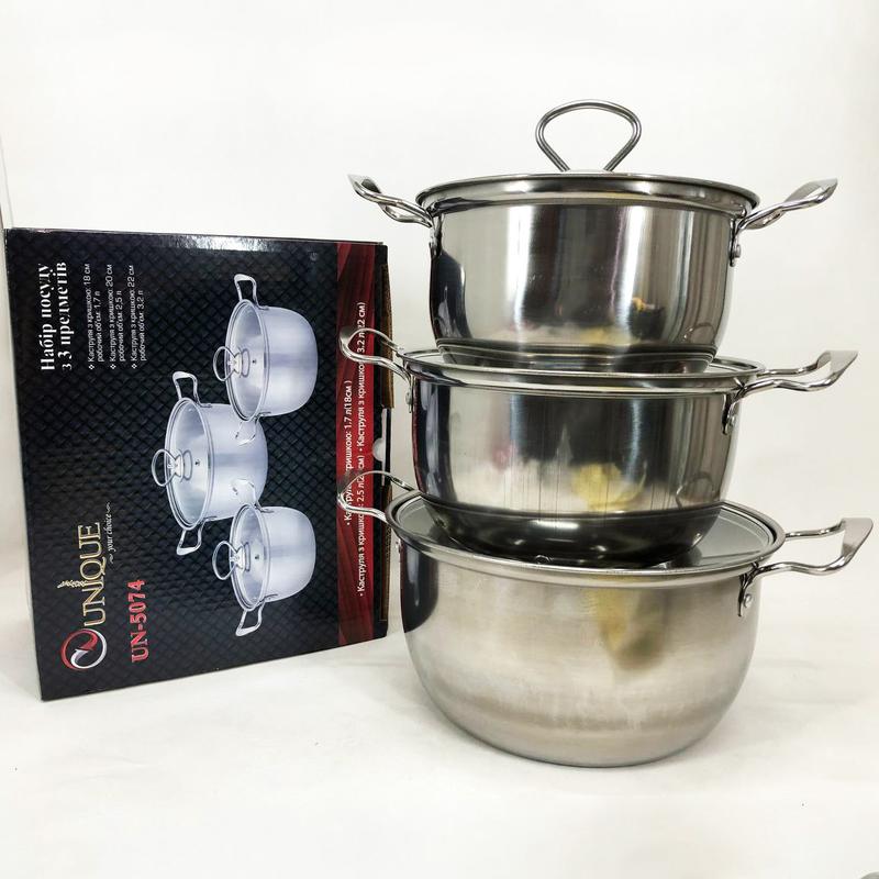 Набір каструль із нержавіючої сталі з кришками unique un-5074, набір посуду для електрични...
