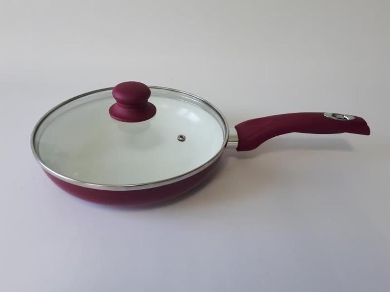 Сковорода для смаження з антипригарним керамічним покриттям зі скляною кришкою лілова d 24...