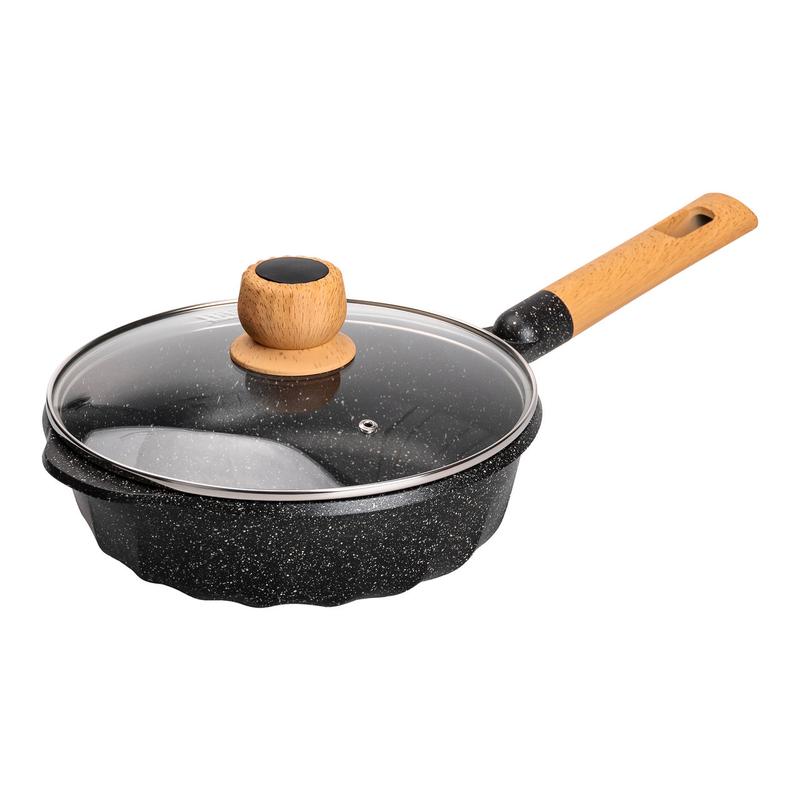 Алюмінієва сковорода з антипригарним покриттям стане незамінним помічником у вашій кухні. Кришка з жароміцного скла забезпечує рівномірне приготування їжі без втрати тепла. Основні характеристики сковороди Діаметр сковороди 24 см Висота 2,7 літрів дна 5,5 мм Антипригарне покриття запобігає пригорянню їжі і легко очищається. Міцний алюмінієвий корпус забезпечує відмінну теплопровідність та готує їжу рівномірно та швидко. Отвори для пари в кришці дозволяють регулювати кількість вологи в сковороді для досягнення ідеальних результатів приготування. Інструкція з використання сковороди HP-4-436B. Першим використанням вимийте сковороду в теплій воді з м'яким миючим засобом і губкою і витріть насухо. Після повного висихання протріть антипригарне покриття невеликою кількістю рослинної олії.Використовуйте силіконові або дерев'яні столові прилади, щоб захистити поверхню від подряпин. Категорично не рекомендується використовувати металеві ложки або лопатки. Щоб уникнути пошкоджень, мийте сковороду після повного охолодження. Не використовуйте жорсткі губки, щітки, абразивні пасти, чистячі порошки і агресивні речовини. Високофункціональний та стильний дизайн робить її чудовим доповненням до будь- якої кухні.