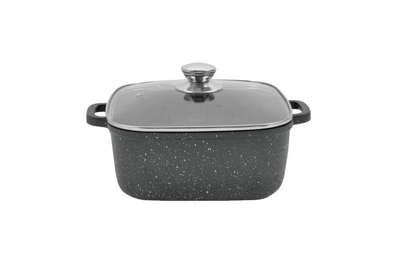 Квадратна каструля Maestro MR2828 з кришкою 28х28 сантиметрів має об'єм 8 літрів, корпус кубічної форми, виготовлений із міцного литого алюмінію, багатошарове дно зі сталевою вставкою підходить для всіх типів джерел тепла, включаючи індукцію. Усередині каструлі Maestro MR 2828 нанесено антипригарне покриття, що дозволяє варити, гасити і навіть смажити продукти в даному посуді.