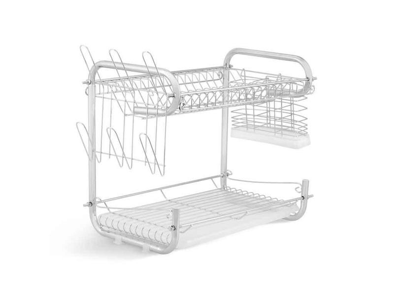 Сушарка Для Посуду 2 Ярус, Пластичний Таця, Висока Якість Нержавіючої Сталі Корпус Матеріал Піддону Пластик Покриття Хромоване Скло - Столові Прилади Підставка Тип Сушіння Настільна Размеры: 55 x 25 x 39,5 см. (Д х Ш х В)
