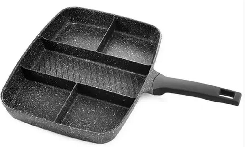 Сковорода 5в1 UNIQUE UN-4021 Сковорода 5 в 1 UNIQUE UN-4021 разделена на 5 отсеков для одновременного приготовления разных продуктов. Имеет антипригарную поверхность. Корпус сковородки прочный и хорошо защищен от царапин и деформаций. Подходит для всех видов плит: газовой, электрической, индукционной. Преимущества Для всех видов плит Антипригарное покрытие Можно мыть в посудомоечной машине Характеристики Размер:38 х50х5 см Форма: прямоугольная Вес: 1.55 кг Материал: алюминий Страна производитель: Китай Комплектация Сковорода-гриль; Ручка для сковороды