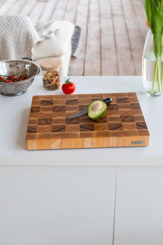 Торцевая разделочная доска из дуба и ясеня размером 30х40х4 см