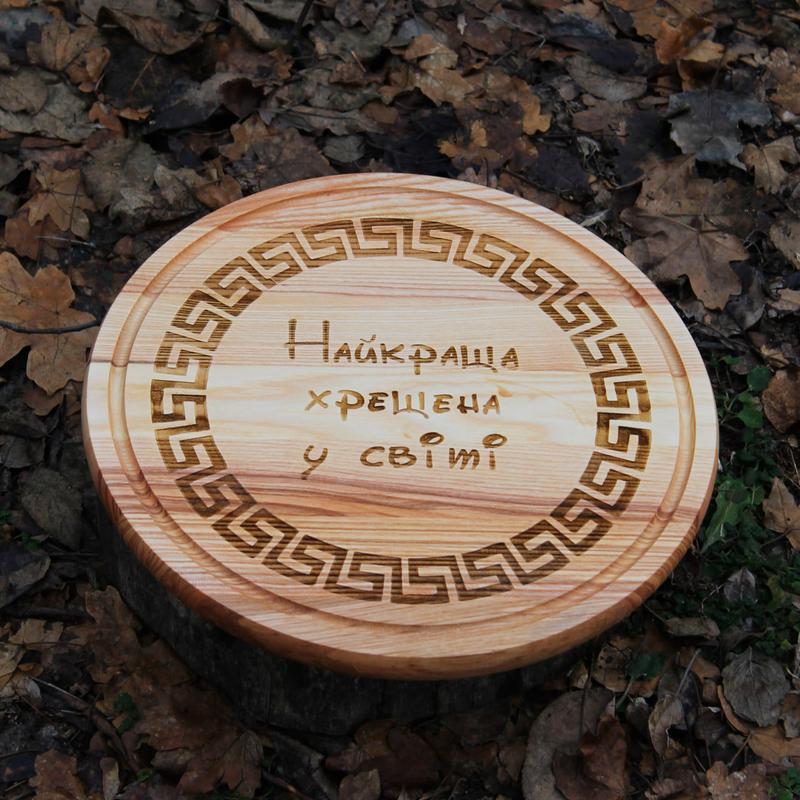 Дошка кухонна кругла з гравіюванням (від 25 см) - найкраща хрещена у світі