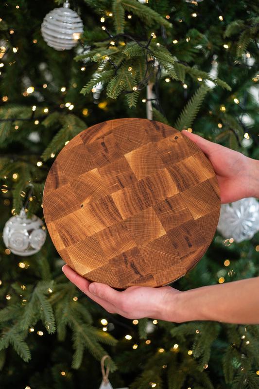 Кругла торцева обробна дошка з дуба, яку не хочеться випускати з рук ⠀ - підходить для нарізки і шинкування продуктів - подати на такому виріб можна будь-яку страву: буде красиво і ефектно - просякнута мінеральним маслом з бджолиним воском - додатково можна зробити жолоб для соку (+50 грн) ⠀ Якість гарантуємо власним виробництвом.