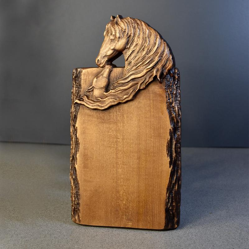 Дошка обробна дерев'яна кінь з лошам. розмір 15 х 27 см.