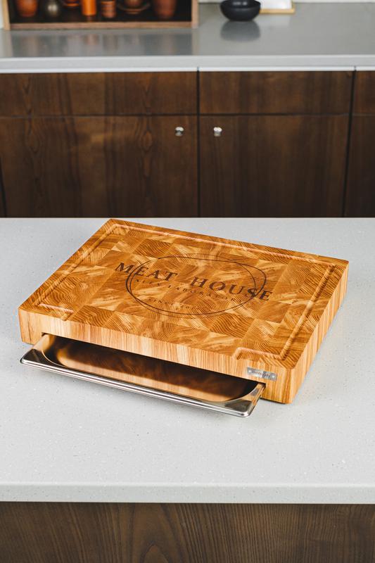 Професійна дубова дошка із гастрономічною ємністю для вашої кухні. - для нарізки та шинкування - висувна гастроємність об'ємом 1.3 літра з харчової нержавіючої сталі, що повністю витягується, забезпечує зручність при різанні: продукти можна відразу з дошки складати в неї. - дошка не тупить кухарський ніж - обробка деревини бджолиним воском у поєднанні з мінеральною олією захищає дошку від вологості та забруднень. - знизу дошки встановлені силіконові ніжки - оснащена жолобом для стоку соку прямо в ємність - при виготовленні торцевої дошки використовується екологічний клей, що припускає контакт з продуктами харчування. Якість гарантуємо власним виробництвом. Також додатково можливе нанесення індивідуального гравіювання, що додасть дошці оригінальності за вашим бажанням.