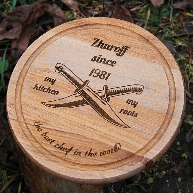 Кухонна дошка з вашим гравіюванням. Що може бути незвичайніше? Друзі! Тепер у нас є і таке, ми не будемо переставати додавати в наш асортимент нові види продукції, адже ми вас любимо і цінуємо, тому хочемо робити для вас більше крутих пропозицій. На дошку можна нанести будь-який текст привітання або малюнок. І ваша дошка буде вже точно в єдиному екземплярі! З вас креатив (картинка, текст, логотип) що найкраще характеризує майбутнього власника. З нас - реалізація! Підійде для всіх! Навіть для тих, хто не вміє готувати, тому що з такою дощечкою гріх не навчитися :) Розміри: 25см, 30см, 35см, 40см, 45см, 50см