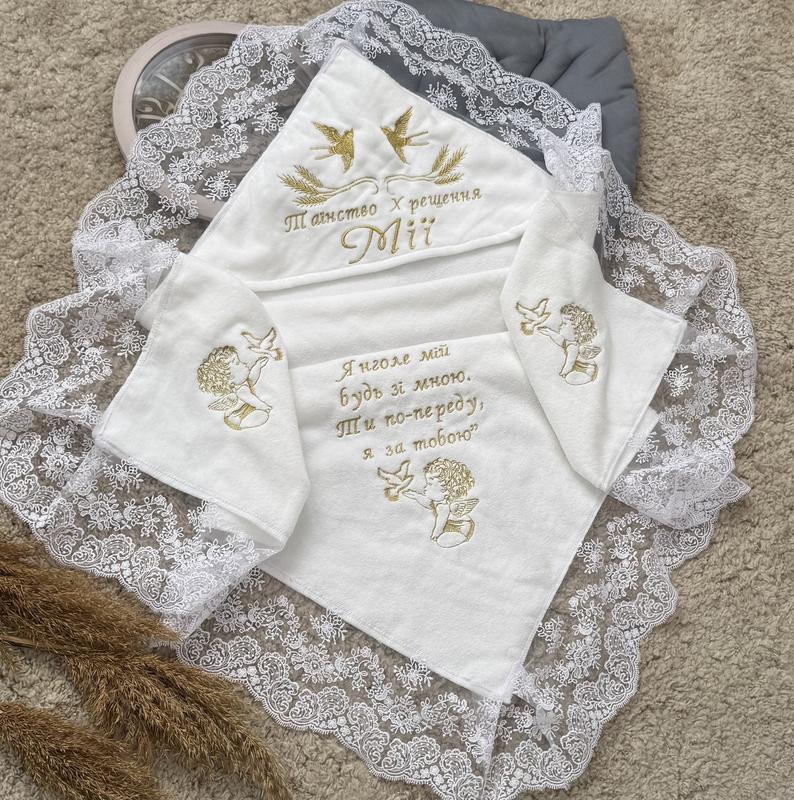 Крижмо з велюр махрі преміум'якості -100% бавовна, чудово вбирає вологу з мереживом блюмарин, дизайн вишивки можна змінити
