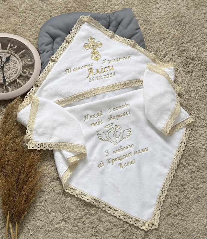 Крижмо з велюр махри преміумкласу на хрещення, 100% бавовна чудово вбирає вологу, вишивку можна міняти