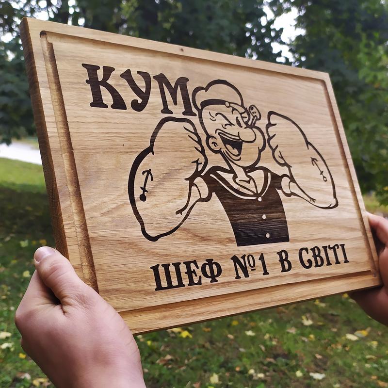 Кухонна дошка з вашим гравіюванням. що може бути незвичайніше? Друзі! Тепер у нас є і таке, ми не будемо переставати додавати в наш асортимент нові види продукції, адже ми вас любимо і цінуємо, тому хочемо робити для вас більше крутих пропозицій. На дошку можна нанести будь-який текст привітання або малюнок. І ваша дошка буде вже точно в єдиному екземплярі! З вас креатив (картинка, текст, логотип) що найкраще характеризує майбутнього власника. З нас - реалізація! Підійде для всіх! Навіть для тих, хто не вміє готувати, тому що з такою дощечкою гріх не навчитися :)