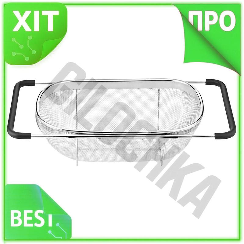 ## VE Друшляк сито з телескопічними New Version ручками з нержавіючої сталі для миття овочів та фруктів. N6W_VER Сито-друшляк з телескопічними ручками – це зручний та практичний кухонний аксесуар, призначений для ефективного миття, сушіння та проціджування овочів, фруктів, макаронних виробів та інших продуктів. Його конструкція дозволяє зручно закріплювати виріб на бортах раковини, забезпечуючи стабільність у процесі використання. Основні характеристики - розмір 29х19х10 см; - довжина із ручками 40 см; - глибина 9 см; - матеріал – нержавіюча сталь. Переваги та особливості: 1. Міцна конструкція – виконана з високоякісної нержавіючої сталі, стійкої до корозії та механічних пошкоджень. 2. Ергономічність – телескопічні ручки з накладками ПВХ забезпечують надійну фіксацію на раковині, запобігаючи ковзанню. 3. Багатофункціональність – підходить для проціджування, промивання, сушіння продуктів і навіть використання як паровий кошик. 4. Компактність та зручність зберігання – завдяки розсувним ручкам друшляк легко адаптується під різні розміри раковин та не займає багато місця при зберіганні. Рекомендується для використання як у домашніх умовах, так і в професійній кухні кафе, ресторанів та їдалень. Ідеально підходить для миття зелені, овочів, фруктів та проціджування пасти. Назва Од.Вим. Значення ТипДрушляк МатеріалНержавіюча сталь Висота100 Ширина190 РучкаДві Ніжки/підставкаЄ Довжина290 Колір.Нержавіюча сталь Підходить для миття в посудомийній машиніТак Гарантия14 днів Не пропустіть вигоду! Кількість акційних товарів суворо обмежена! Попередження: на ринку працюють м'яко кажечи не сильно чесні люди, пропонуючи дешеву низькоякісну продукцію під виглядом справжнього товару!Будьте пильними. Ми гарантуємо вам придбання виключно добротного товару в Україні, який бездоганно виконує свої функції та приносить лише позитивні емоції від використання. Чому вигідно купувати саме у нас? Справжні відгуки та рекомендації від задоволених клієнтів Наш інтернет-магазин по праву гордиться великою кількістю позитивних відгуків від вдячних клієнтів. Ознайомтесь з їхніми думками та порадами прямо на цій сторінці або на нашому офіційному сайті, щоб остаточно переконатися у правильності вашого рішення. Максимальна відкритість і чесність у кожному аспекті Ми будуємо міцні відносини з покупцями на засадах порядності та відкритості, завжди готові до діалогу та пошуку компромісів. Всі ключові характеристики продукції, гарантійні зобов'язання та умови обміну детально представлені на нашому веб-сайті, що забезпечує повну довіру та взаєморозуміння. Проста та зручна процедура повернення без зайвих зусиль Ми прекрасно розуміємо, що іноді трапляється, що обраний товар з якихось причин не підійшов. Саме тому наша система повернення є максимально прозорою та клієнтоорієнтованою, щоб ви відчували себе захищено та спокійно після здійснення покупки. Обслуговування преміум-класу, підкріплене 10-річним досвідом Наші досвідчені фахівці завжди готові надати вичерпну консультацію та професійну допомогу у виборі оптимального товару. Ми цінуємо кожного покупця та докладаємо максимум зусиль, щоб процес вашої покупки був максимально комфортним та вигідним. Швидкісна доставка та гнучкі умови оплати на вибір Ми гарантуємо блискавичну доставку по всій території України,